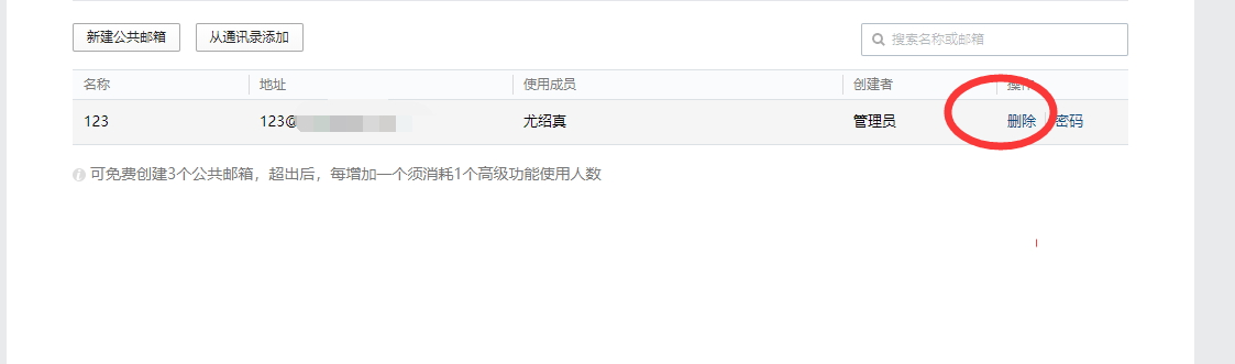 第二种方式:先把腾讯邮箱公共邮箱账号删除在重新分配给成员使用。