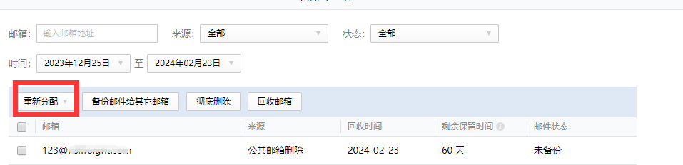 分配给成员之前的邮箱账号会到回收邮箱来,如果数据要谨慎操作。