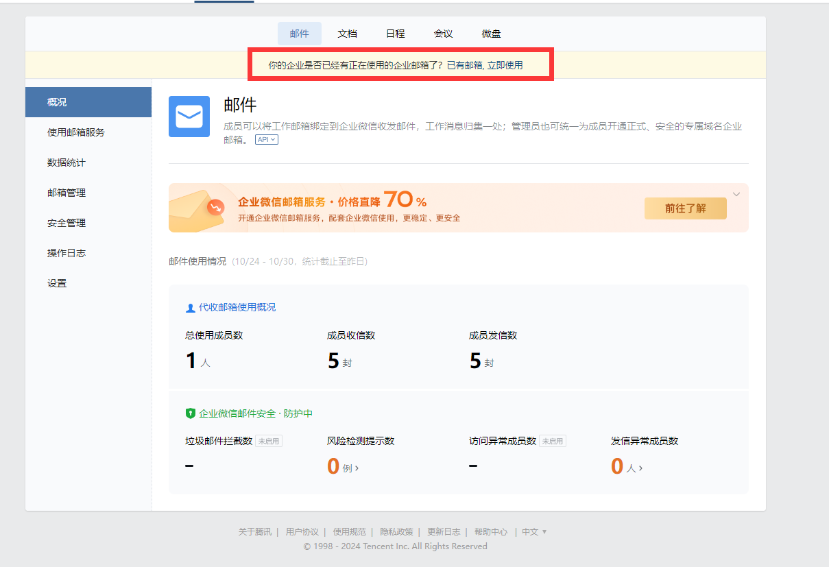 现在企业微信后台是否已有在用企业域名的,已有使用的企业微信邮箱?
