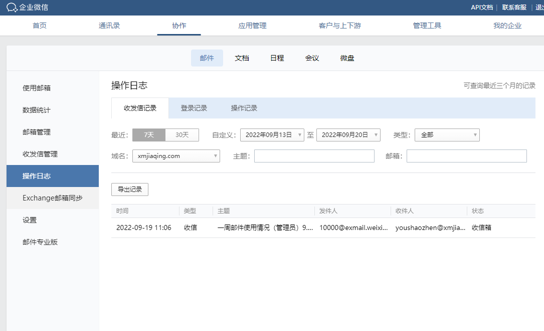 自2022年1月以来腾讯上新了最新版本“协作”就是企业微信侧加企业邮箱,邮箱管理从此升级合并为同一个后台。
