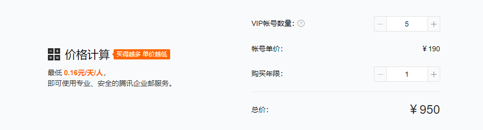 这个价格在腾讯官网是可以查询到的:https://work.weixin.qq.com/mail/