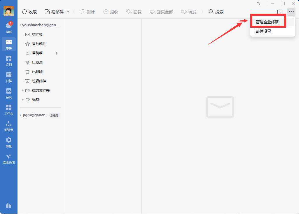 当被创建人设置成超级管理员或分级管理员后,那么登录邮箱中也会显示管理邮箱入口。