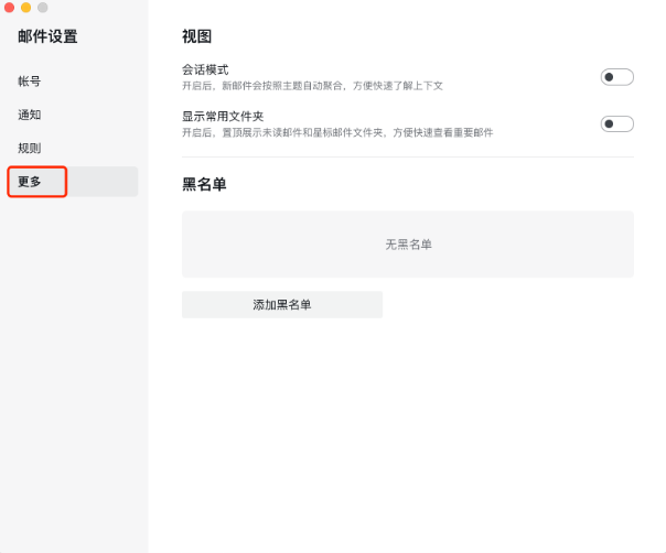 1.简化邮件列表,同一主题产生的多封往来邮件,会转化为一封会话邮件;