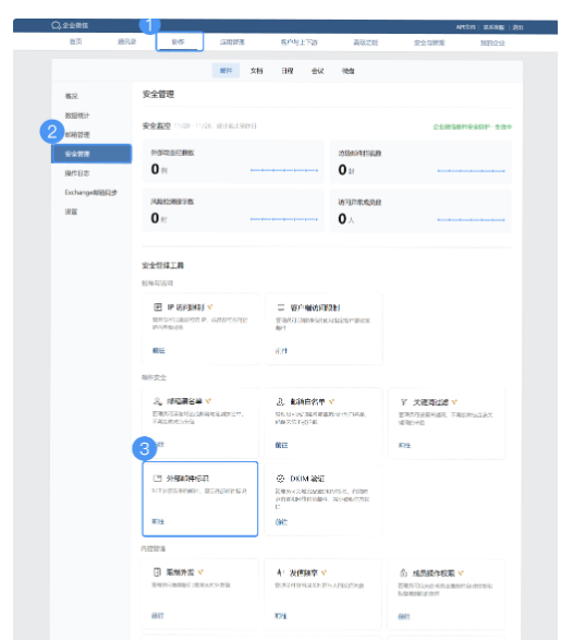 开启「陌生人来信识别」功能,将在成员通过企业微信查看陌生地址来信时有风险提示,展示“外部”邮件标识,加强企业邮件安全。
