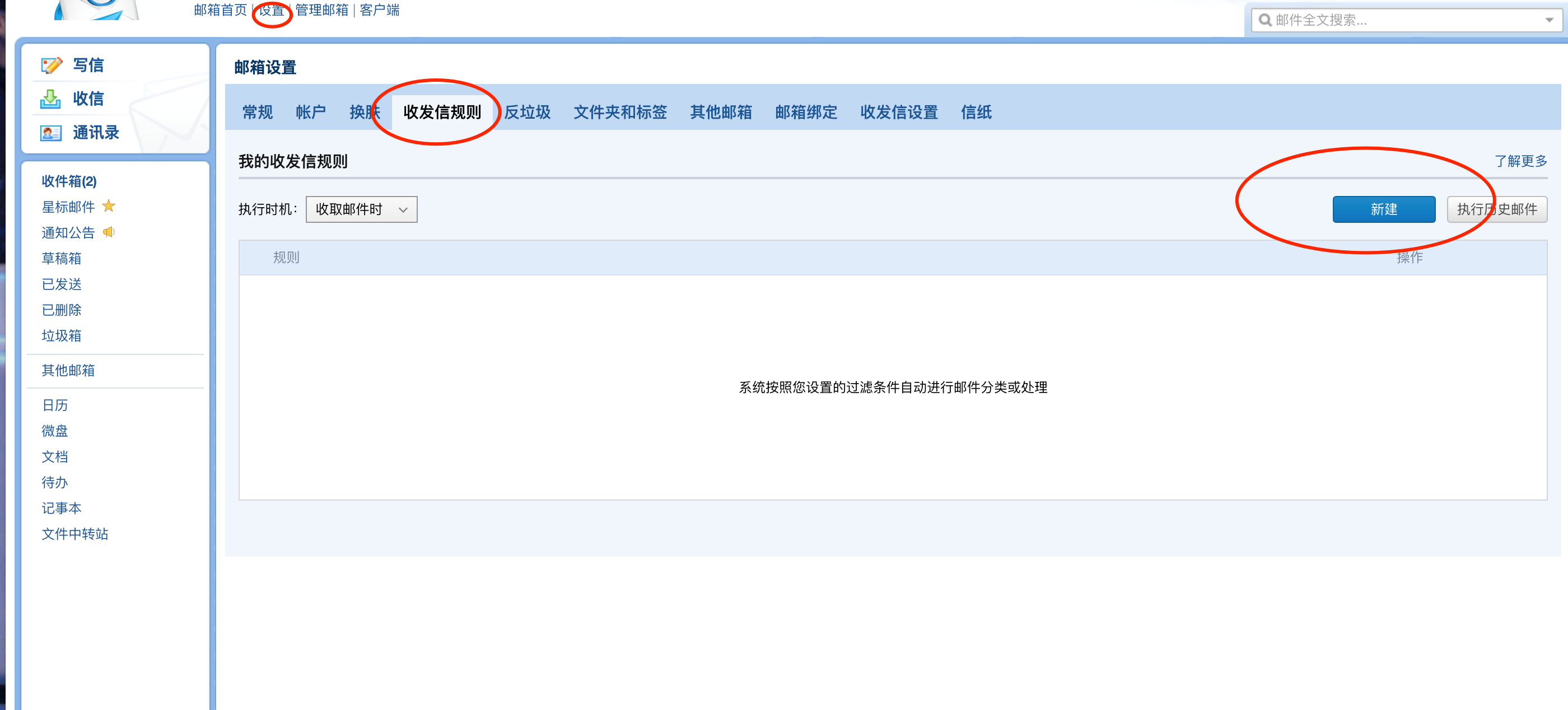 4.邮件将按规则列表从从上至下的顺序进行检查及执行,可手动调整规则的顺序。